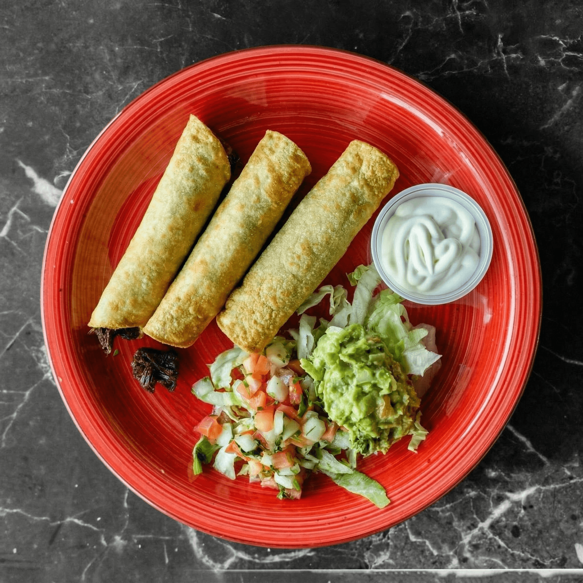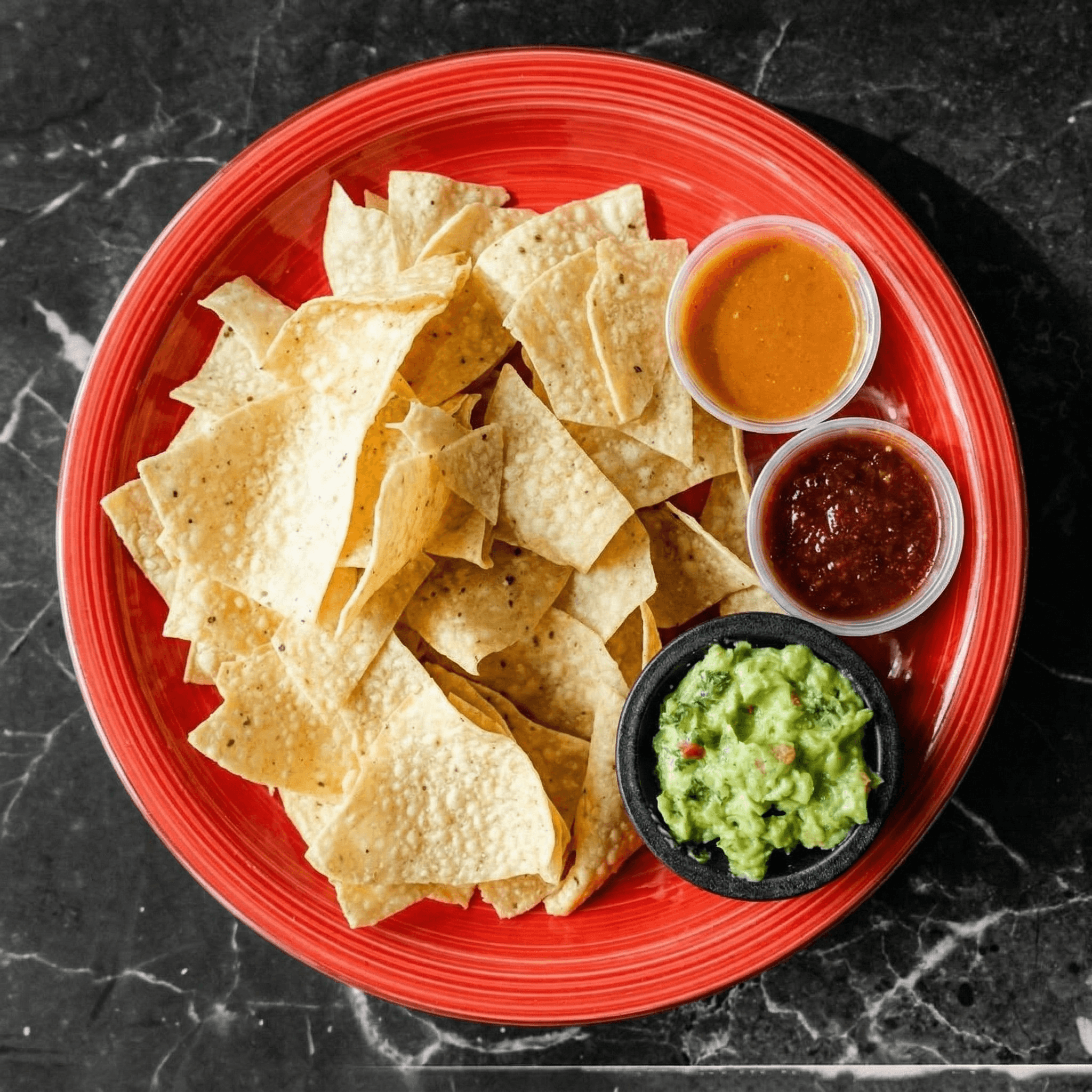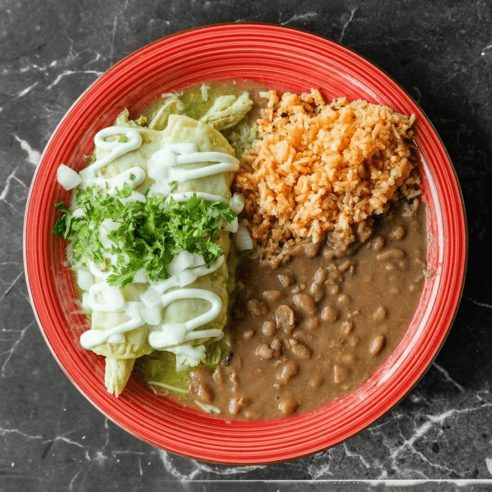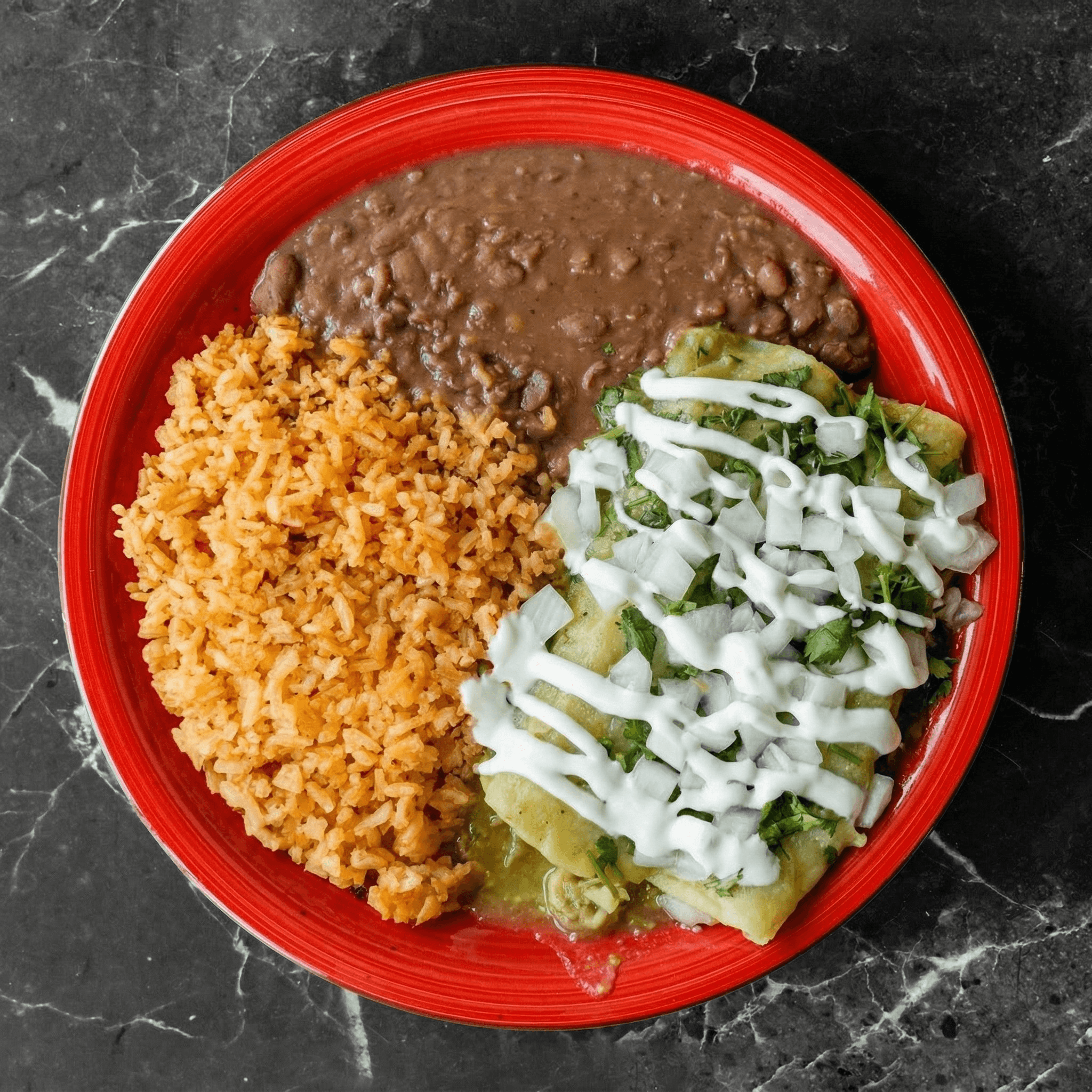 Choice of protein, beans, rice. Served with 4 items (extra toppings additional charge)